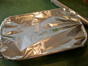Izrezati papir za pečenje na veličinu malo veću od lima za pečenje, pa na njega rukama nanijeti mesnu smjesu u obliku pravokutnika, veličine otprilike 30×25 cm.