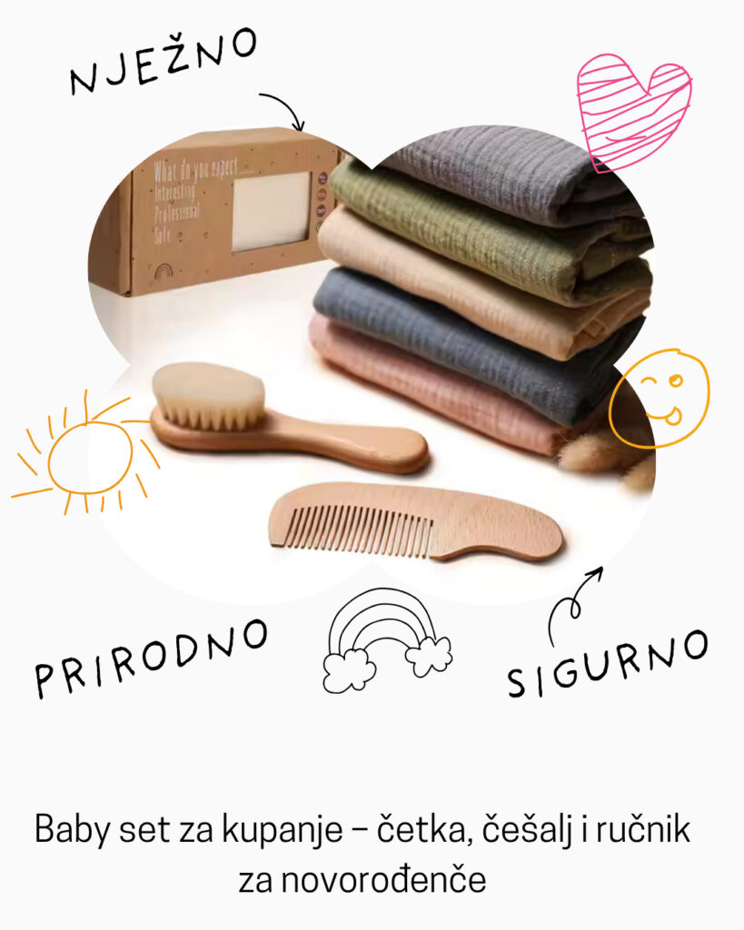 - Drveni baby set za kupanje – sigurnost i zabava tijekom kupanja.